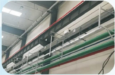 厂房内的主要管线基本全都采用架空敷设,管线布置有其自身的 一些基本原则,因此管道的固定支架,一般设置在结构承载力可以满 足的钢柱或钢梁等部位。成品支吊 架其特点在于提供了配合钢结构厂房使用的生根构件、管部构件、连接构件、减震构件及钢构件,这些构件均为机械连接,解决了钢构件上不宜焊接的难题。